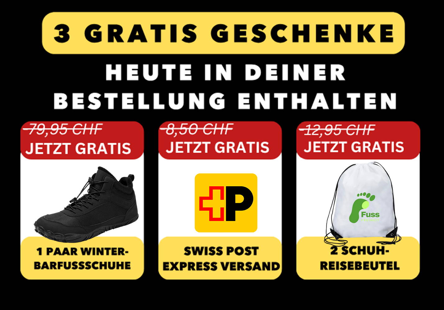 Durch das Tragen von Schuhen kannst du deine Fuss-, Knie- und Rückenschmerzen reduzieren.